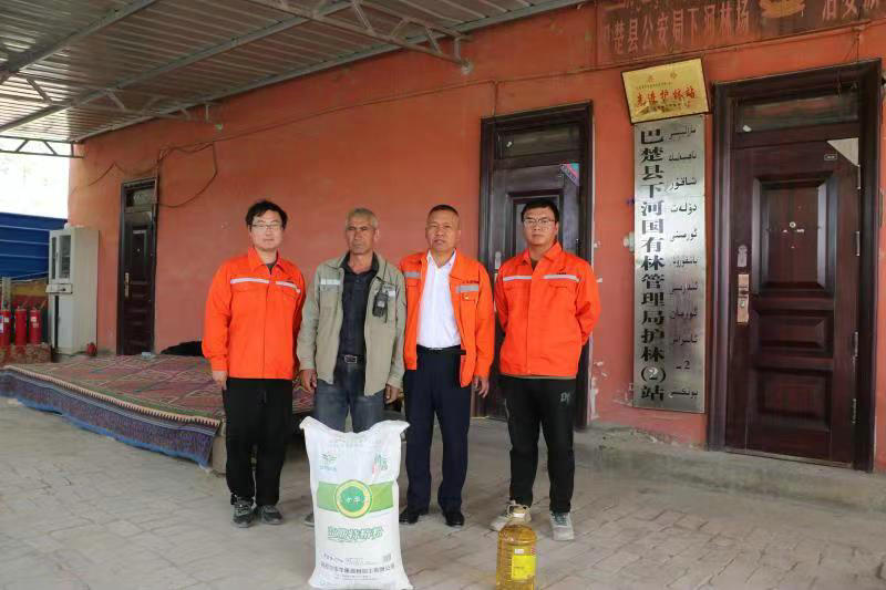 黨支部書記董軍一行深入巴楚縣下河林場護林站,為常年守護夏河林場的51歲維吾爾族職工艾買提·沙吾提帶去了米、面、油等慰問品,了解民族同胞生產(chǎn)生活、家庭收入等情況,并勉勵他們要堅定信心,通過自身努力不斷提高生活質(zhì)量,共同創(chuàng)建幸福、美滿、和諧、團結(jié)大家庭。進入夏季以來,持續(xù)高溫干旱天氣,造成森林防滅火形勢異常嚴峻,護林員開展“白加黑”應(yīng)急森林防滅火巡查值守模式,白天巡邏,晚上值班,堅守在林區(qū)防滅火一線,保障項目施工區(qū)域防火安全和自然保護區(qū)胡楊林。