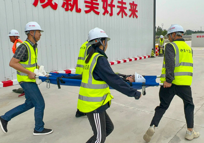此次演練模擬河北省滄州市海興縣突遭暴雨襲擊,項(xiàng)目2號(hào)鋼筋加工場(chǎng)水位急速上漲,重要物資設(shè)備和作業(yè)人員遭遇險(xiǎn)情,急需轉(zhuǎn)移。分部安全管理部部長(zhǎng)、防洪搶險(xiǎn)監(jiān)測(cè)預(yù)警組組長(zhǎng)張海嬌發(fā)現(xiàn)汛情后,立即向分部負(fù)責(zé)人、應(yīng)急救援總指揮宋延濤報(bào)告??傊笓]隨即下達(dá)命令,立即啟動(dòng)防汛搶險(xiǎn)應(yīng)急預(yù)案。監(jiān)測(cè)預(yù)警組、應(yīng)急搶險(xiǎn)組、醫(yī)療救護(hù)組、物資后勤組、通訊聯(lián)絡(luò)組、保衛(wèi)疏散組等6個(gè)小組的應(yīng)急搶險(xiǎn)人員迅速趕赴現(xiàn)場(chǎng),展開(kāi)搶險(xiǎn)救援。裝填、運(yùn)輸沙袋筑防水壩,接水管、安裝水泵抽排水,對(duì)受傷人員進(jìn)行急救并轉(zhuǎn)移至安全地帶或醫(yī)院,對(duì)危險(xiǎn)區(qū)進(jìn)行警戒,維持交通秩序等應(yīng)急處置工作緊張有序進(jìn)行……現(xiàn)場(chǎng)情景模擬真實(shí),應(yīng)急搶險(xiǎn)救援緊張有序,活動(dòng)取得圓滿成功。