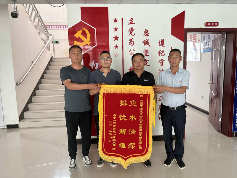 圖木舒克訊(通訊員 李宇通)近日,一面鐫銹著“魚水情深排憂解難”的錦旗由五十一團一連連隊書記送到了兵團交建圖木舒克市政項目部,向他們表示感謝。