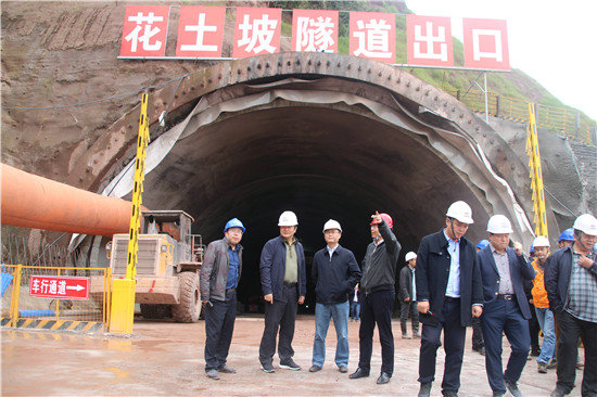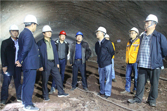 本網(wǎng)訊(胡天佑)10月23日下午,中鐵建重投集團(tuán)副總經(jīng)理王必軍、重慶鐵發(fā)建新公司董事長(zhǎng)王業(yè)好一行到渝黔擴(kuò)能二標(biāo)控制性工程花土坡隧道檢查指導(dǎo)工作。渝黔擴(kuò)能建設(shè)指揮部、渝黔擴(kuò)能第二總承包部、渝黔擴(kuò)能第二總監(jiān)辦等領(lǐng)導(dǎo)陪同檢查。