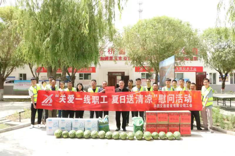 “身體是革命的本錢”,在慰問現(xiàn)場,公司領導趙睿龍高度贊揚了一線廣大職工,叮囑大家保重身體,注意防暑,為大家發(fā)放防暑用品。先后查看了第三師圖昆公路二標項目和圖木舒克市政項目建設情況,他強調持續(xù)加強質量、安全及環(huán)保等方面的管控,展現(xiàn)出“北新速度”,按時完成工程項目節(jié)點任務,在第三師地區(qū)樹立公司品牌,穩(wěn)定三師市場。