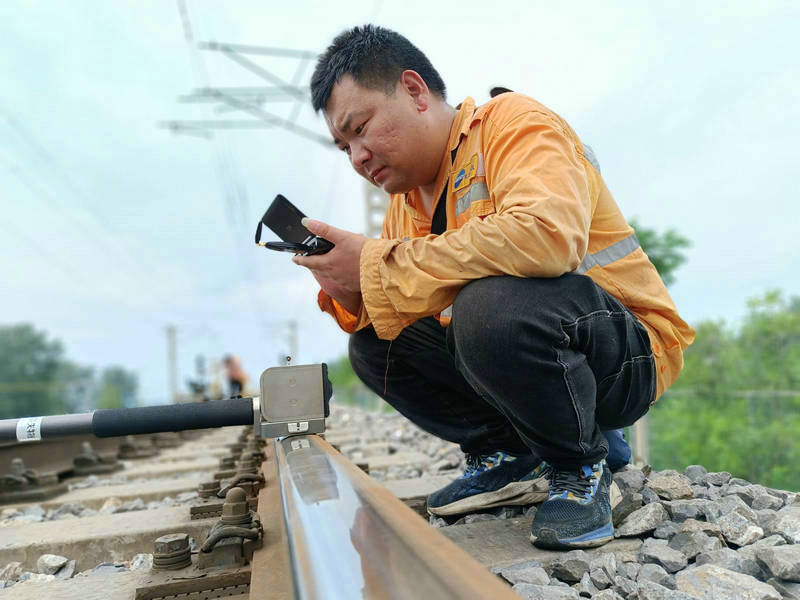 “我們工務(wù)養(yǎng)護維修作業(yè)的標準都是以毫米計算,不要輕視這小小的一毫米,它有可能會對列車運行安全造成影響。”趙燕青擦了一把臉上的汗水說道。當前正值高溫天氣,雖然預(yù)報氣溫達到35攝氏度,但是在鐵路上,溫度已超過40攝氏度。趙燕青和同事穿著長衣長褲工作服,不多大會,衣服便已濕透,緊緊地貼在背上。