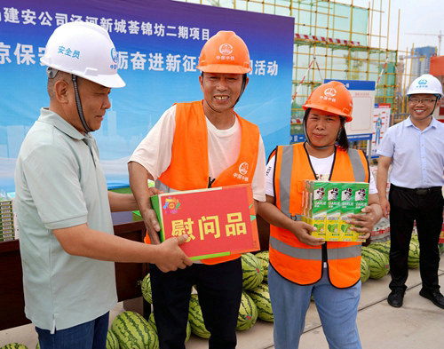 在送清涼現(xiàn)場,楊東雷表示,公司工會常年堅(jiān)持開展向一線職工送清涼送慰問活動,是關(guān)心職工安全、關(guān)愛職工健康和踐行“我為群眾辦實(shí)事”及建安公司“幫幫樂”主題活動的生動實(shí)踐和具體舉措。希望各項(xiàng)目部都能夠以活動為契機(jī),做好對職工的關(guān)心和關(guān)愛,積極落實(shí)好防暑降溫措施,備足應(yīng)急藥品和物資,完善應(yīng)急預(yù)案和處置方案,切實(shí)保障參建員工的身體健康。希望全體參建人員也能夠繼續(xù)發(fā)揚(yáng)鐵軍精神,再接再厲,頑強(qiáng)拼搏,持續(xù)開展“效益提升 價(jià)值創(chuàng)造”勞動競賽活動,狠抓施工管理各項(xiàng)工作,力爭高標(biāo)準(zhǔn)完成項(xiàng)目建設(shè),為業(yè)主和社會奉獻(xiàn)精品工程!
