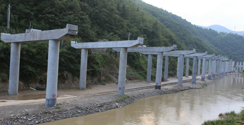 從平利到鎮(zhèn)坪山高路險(xiǎn),到處是莽莽林海,幾百米高的山峰一座連著一座,奇峰怪洞,地勢(shì)為兩山夾一河,兩山之間相距二百來米,窄的地方只有幾十米,高速公路順河而上,橋墩全部設(shè)計(jì)在河中。由于地勢(shì)狹窄,經(jīng)常是一下大雨河水就暴漲,上游下雨,下游發(fā)洪水,給樁基施工帶來極大困擾。17標(biāo)項(xiàng)目部三座特大橋的668根樁基,最長(zhǎng)的29米,最短的為10米,樁徑則從1.3至2米不等,共有6種尺寸,洪水對(duì)工程的影響,施工成本的投入都是巨大的。“施工樁基、底系梁掙的工費(fèi)還不夠交電費(fèi)。”平鎮(zhèn)高速17標(biāo)項(xiàng)目部保障部部長(zhǎng)熊興明無意間說的一句話,道出了施工過程的艱辛。