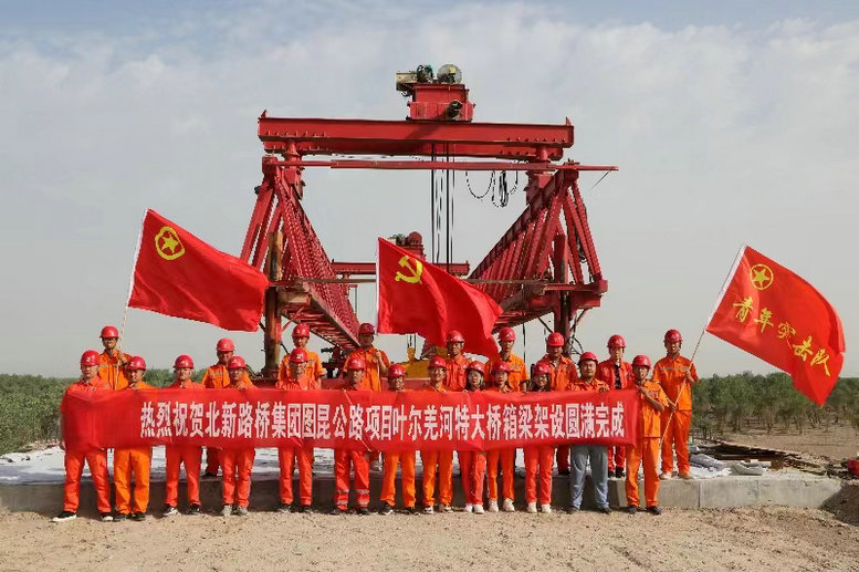 圖木舒克訊(通訊員 李儼 曾雷)8月12日,隨著最后一榀長(zhǎng)30米、重約90噸的簡(jiǎn)支箱梁平穩(wěn)鋪設(shè),北新路橋集團(tuán)兵團(tuán)交建公司施工的圖昆公路二標(biāo)葉爾羌河特大橋384片箱梁架設(shè)任務(wù)全部完成,橋梁實(shí)現(xiàn)貫通。這標(biāo)志著,該項(xiàng)目又一重要控制性工程取得突破性進(jìn)展,為實(shí)現(xiàn)“國(guó)慶節(jié)”全線通車目標(biāo)奠定堅(jiān)實(shí)基礎(chǔ)。