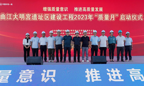 (西安訊)為全面推動建設(shè)工程質(zhì)量品質(zhì)提升,牢固樹立建設(shè)工程質(zhì)量意識,弘揚(yáng)大國工匠精神,9月8日,西安市曲江大明宮遺址區(qū)建設(shè)工程2023年“質(zhì)量月”啟動儀式在中鐵一局曲江御井路公租房項(xiàng)目部駐地圓滿舉辦。此次活動由西安市曲江大明宮遺址區(qū)保護(hù)改造辦公室主辦,中鐵一局曲江御井路公租房承辦。