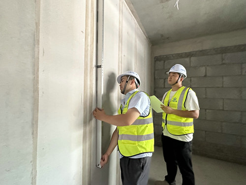二次結(jié)構(gòu)施工以來,項(xiàng)目部統(tǒng)籌規(guī)劃明確目標(biāo)任務(wù),精心組織施工、合理安排各項(xiàng)施工工序,并嚴(yán)格執(zhí)行“樣板引路”、“首件工程跟班”、“舉牌驗(yàn)收”制度,確保二次結(jié)構(gòu)砌體、ALC施工符合規(guī)范要求。施工過程中,項(xiàng)目部堅(jiān)持高標(biāo)準(zhǔn)、嚴(yán)要求,嚴(yán)把材料關(guān)、質(zhì)量關(guān)、安全關(guān),強(qiáng)化管控、細(xì)節(jié)制勝,多次開展二次結(jié)構(gòu)、ALC施工專項(xiàng)檢查,以工匠精神雕琢工程品質(zhì)。