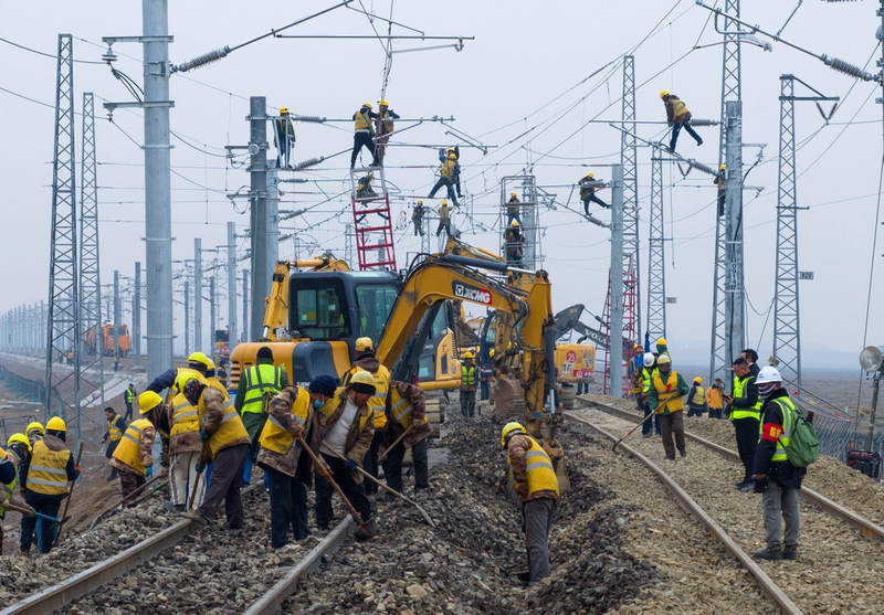 在臨近營業(yè)線僅3米左右建設(shè)70公里的鐵路二線,原線路還在不斷通過高頻次客貨列車,既要克服大風(fēng)天氣多、施工點(diǎn)分散、交叉作業(yè)多等不利因素影響,還要全面保障行車安全和施工安全,就像在刀刃上跳舞,風(fēng)險(xiǎn)挑戰(zhàn)無時(shí)不有、無處不在。中鐵二十一局2500余名建設(shè)者歷時(shí)9個(gè)月日夜奮戰(zhàn),600多次“封閉點(diǎn)”天窗作業(yè),在“狹路相逢”中爭分奪秒、日夜奮戰(zhàn),安全高效完成了施工任務(wù),使東起連云港、西至阿拉山口全長4182公里的“新亞歐大陸橋”國內(nèi)段鐵路大通道首次形成全線雙線運(yùn)營,為“一帶一路”建設(shè)插上騰飛之翼。