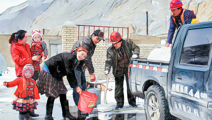 《送水》北新路橋集團中巴公路項目為柯爾克孜族牧民義務(wù)送水 雒煥鼎作2017年以來,為響應(yīng)自治區(qū)號召,該公司北疆項目使用南疆維吾爾族富余勞動力163人,各施工項目以導(dǎo)師帶徒活動為抓手,由干部骨干一對一結(jié)對子,教授國語、漢字,教授施工技能,提高民族職工持續(xù)致富能力,先后培養(yǎng)出一大批民族技工骨干,實現(xiàn)了北新路橋以筑路架橋促進地方經(jīng)濟發(fā)展,以民族團結(jié)帶動地方百姓致富的目標。