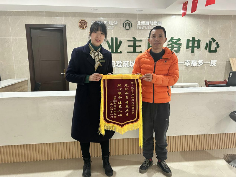 重慶合川訊(通訊員 秦偉建)。2024年2月18日,重慶北新宜邦物業(yè)樓棟管家劉德霜收到了10棟6-3業(yè)主特意定制的一面繡著“盡職盡責(zé),情系業(yè)主”的錦旗,表示著對樓棟管家劉德霜任勞任怨工作的認(rèn)可和深深的感謝。