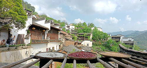 掛在山崖上的篁嶺古村,屬典型山居村落,是婺源東線的景區(qū)之一,距離婺源縣城39公里。篁嶺旅游并不受季節(jié)影響,春天可以觀油菜花海、夏天可以戲峽谷溯溪、秋天可以賞古村曬秋、冬天可以品民俗度假。這里因“曬秋”聞名遐邇,每年夏秋交替房前屋后成了竹曬匾的世界,長長木架托起圓圓的曬匾,春曬茶葉、蕨菜,秋曬紅辣椒、稻谷等。