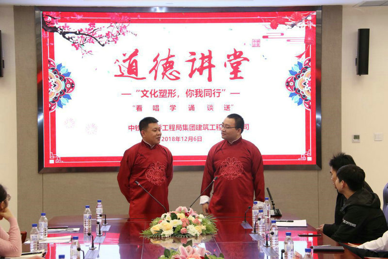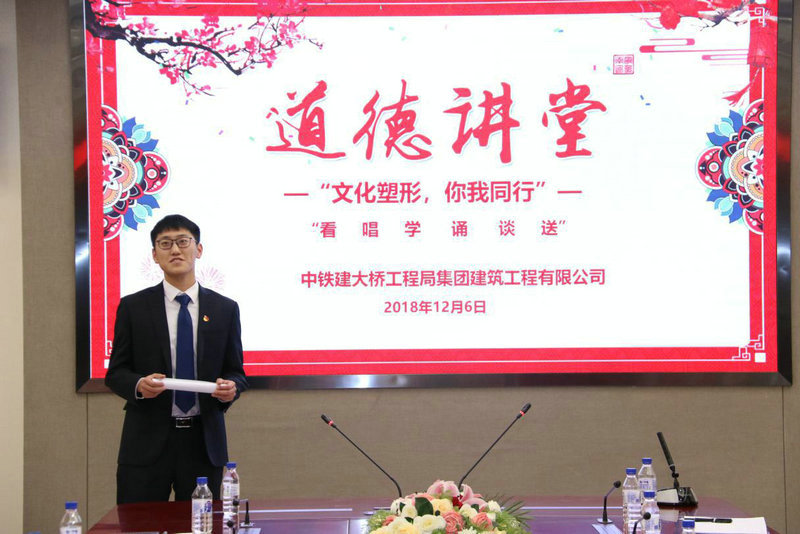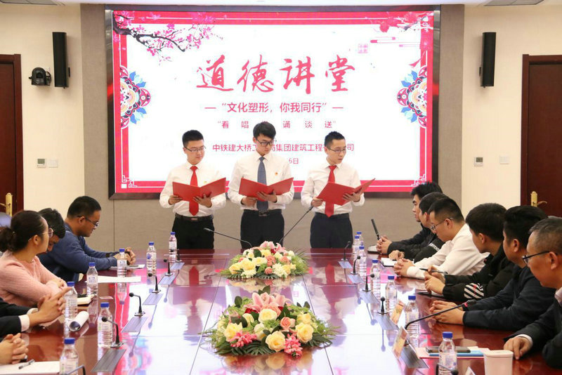 12月6日,中鐵建大橋局建筑公司在天津鐵建大廈開展了以“文化塑形,你我同行”為主題的道德講堂活動(dòng),來自公司領(lǐng)導(dǎo)班子成員、機(jī)關(guān)全體職工及公司所屬天津區(qū)域部分職工共50多人齊聲誦讀經(jīng)典、感悟道德力量。