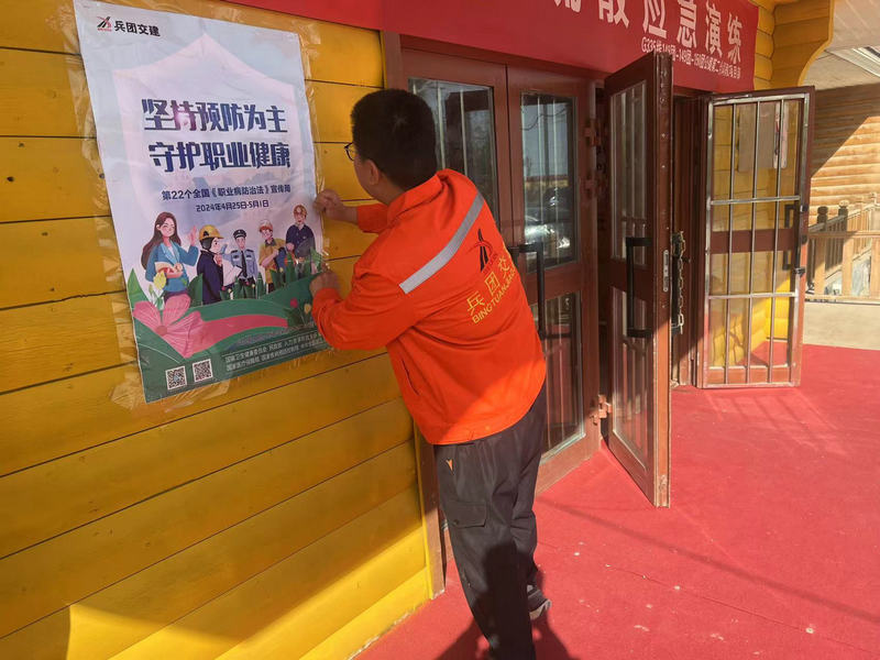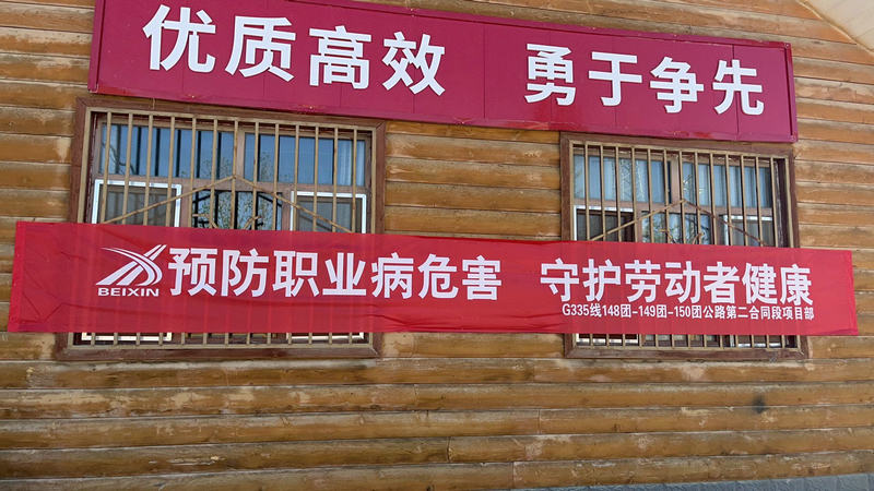石河子訊(通訊員 李宇通)近日,北新路橋集團(tuán)兵團(tuán)交建公司第八師G335二標(biāo)項(xiàng)目“職業(yè)衛(wèi)生健康安全”工作按照公司職業(yè)防治工作的總體要求,并結(jié)合項(xiàng)目部各職業(yè)工作的實(shí)際情況,依據(jù)《職業(yè)病防治法》等法律法規(guī),項(xiàng)目部積極組織開展了職業(yè)病防治宣傳系列活動(dòng)。