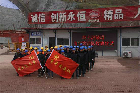 11月13日,渝黔項(xiàng)目部在花土坡隧道施工現(xiàn)場舉行了青年突擊隊(duì)授旗儀式,拉開了水壓爆破技術(shù)創(chuàng)新攻關(guān)的序幕。項(xiàng)目經(jīng)理張貴倉、書記胡天佑分別為青年突擊隊(duì)授旗。