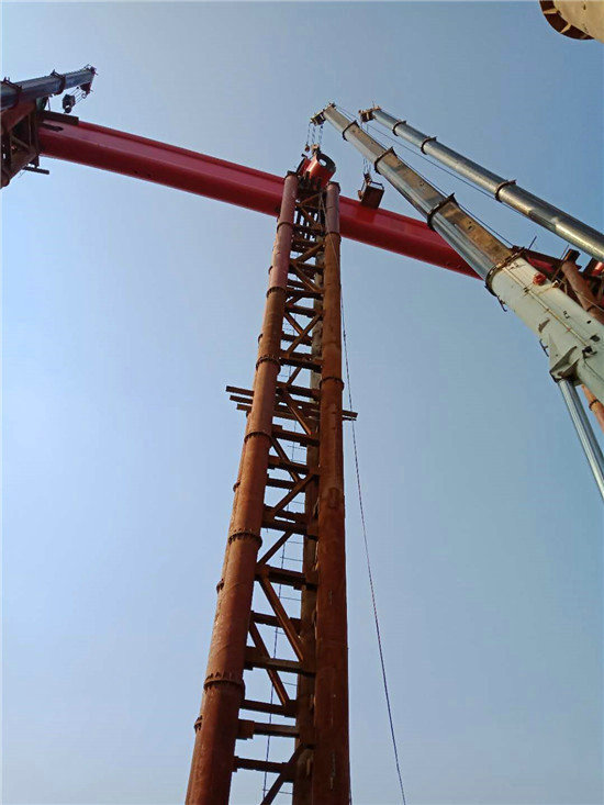該橋跨越淮河的第二大支流渦河,是本標(biāo)段的重難點(diǎn)控制性工程,工期緊、安全風(fēng)險(xiǎn)高、施工難度大。為確保施工安全、安裝精度及工程進(jìn)度,項(xiàng)目部根據(jù)本橋鋼管拱專項(xiàng)施工方案,結(jié)合現(xiàn)場實(shí)際施工條件和要求,優(yōu)化施工組織。討論制定了可行性工藝方法,確定了臨時(shí)支架采用分節(jié)制作、倒運(yùn)、安裝的搭設(shè)方法,每個(gè)支架分兩節(jié)安裝,法蘭盤連接,節(jié)約了支架安裝時(shí)間。