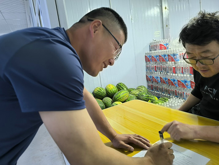 7月26日,新疆金銅礦采選項目開展“夏送清涼 保安全 比學趕超促生產(chǎn)”活動,有效保障高溫天安全施工生產(chǎn),進一步提高生產(chǎn)效率,項目為施工人員采購了西瓜、礦泉水、綠豆等送清涼物資,并在第一時間將物資送到一線員工手里。