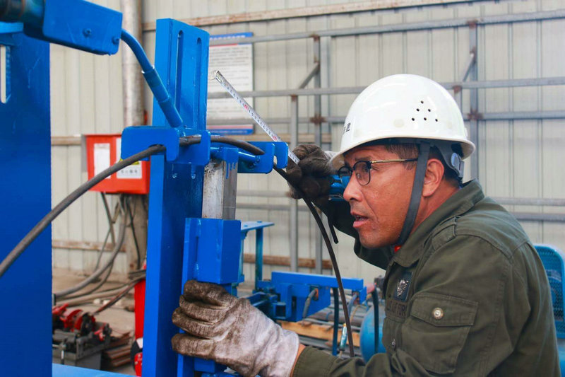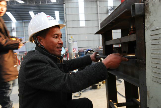 圖為馬小利調(diào)試鋼筋自動焊接設(shè)備