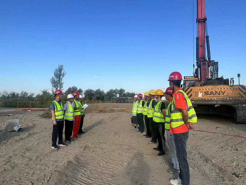 據(jù)介紹,為確保首樁施工順利進行,第八師G335二標項目部精心制定周密的施工方案,對施工人員進行了詳細的技術交底和安全培訓,保障了場地平整和測量放樣等工作,嚴格按照標準化施工。業(yè)主、監(jiān)理等各方單位現(xiàn)場監(jiān)督,對原材料質量、施工工藝等各個環(huán)節(jié)嚴格把關,保證試樁安全開鉆,確保工程質量。