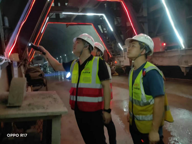 中秋夜,項(xiàng)目經(jīng)理阮超帶隊(duì)在中梁山隧道進(jìn)口小里程右線掌子面夜查