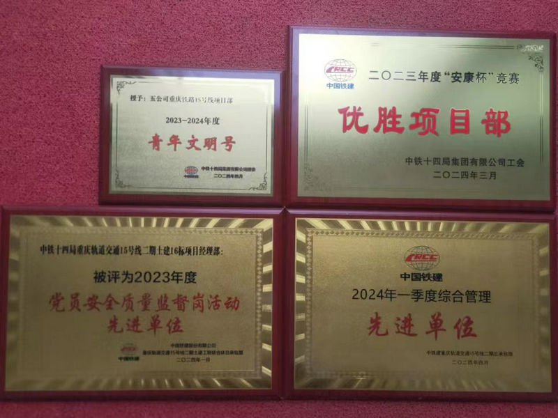 項目部先后榮獲第六屆“優(yōu)路杯”全國BIM技術(shù)大賽優(yōu)秀獎,中施企協(xié)綠色建造過程評價“三星”級,重慶市建設(shè)工程施工質(zhì)量安全管理總站“揚塵控制示范工地”,重慶市鐵路集團年度軌道交通建設(shè)”先進施工單位”“先鋒工地”,中鐵十四局集團“安康杯”競賽優(yōu)勝項目部,技術(shù)創(chuàng)新管理先進單位”,“安全生產(chǎn)先進單位”等榮譽稱號, 總之,“五亮五共”活動有助于充分發(fā)揮黨支部的戰(zhàn)斗堡壘作用和黨員的先鋒模范作用,為重慶軌道交通15號線的建設(shè)提供堅實保障。項目施工的物流園北站至井口站區(qū)間雙線盾構(gòu)提前順利貫通,兩座高架橋和路基主體工程提前完成,中梁山隧道進出口安全優(yōu)質(zhì)高效推進。 目前,在推進精細化施工和“決戰(zhàn)120天,決勝年度任務(wù)”活動的過程中,項目部進一步細化方案、激勵措施、強化機制、明確責任等方面持續(xù)發(fā)力,真正把巴渝快軌建設(shè)成為上級單位的放心項目,重慶市民的滿意工程。(文/杜曉言、林赤喜 圖/楊笙峰、高花花)
