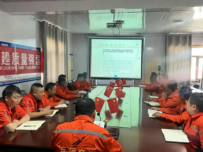 石河子訊(通訊員 穆鴻宇)為深入學(xué)習(xí)貫徹黨的二十屆三中全會精神,推動全會精神落地生根,近日,北新路橋集團(tuán)兵團(tuán)交建公司第八師G335二標(biāo)項(xiàng)目組織學(xué)習(xí)黨的二十屆三中全會精神, 項(xiàng)目全體黨員、入黨積極分子及管理人員參加了會議。