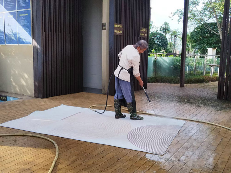 在清洗現(xiàn)場(chǎng),工作人員仔細(xì)地將地毯鋪開(kāi),先用吸塵器吸去表面的灰塵,然后用清潔劑對(duì)污漬處進(jìn)行重點(diǎn)處理,再通過(guò)高壓水槍反復(fù)沖洗。每一個(gè)步驟都有條不紊,力求讓每一塊地毯都能恢復(fù)干凈整潔。一位業(yè)主高興地說(shuō):“原本我都不知道該怎么處理這塊臟地毯了,沒(méi)想到物業(yè)這么貼心,真的幫了大忙。”