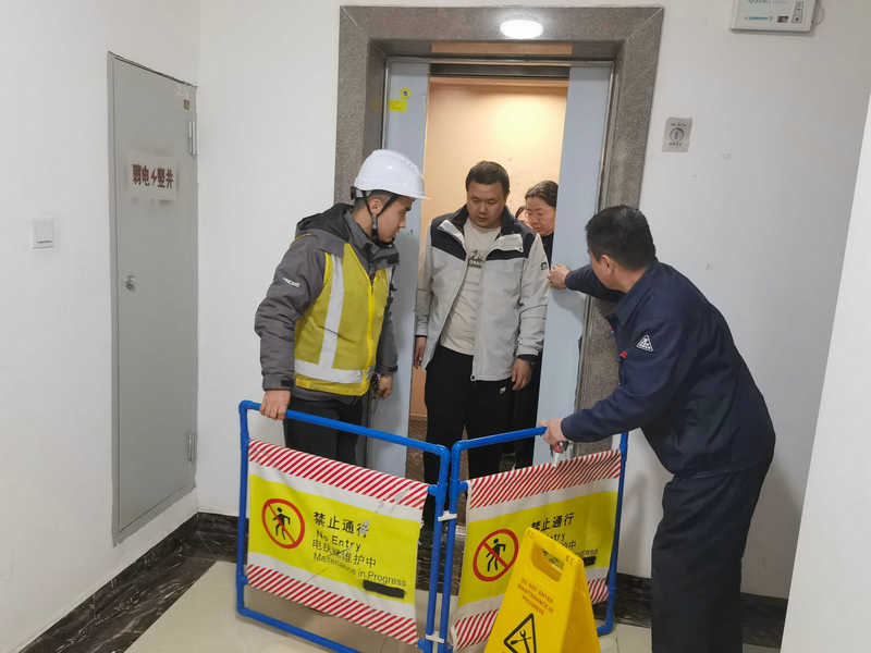 在疏散過(guò)程中,設(shè)置突發(fā)警情,有人員乘坐電梯且被困電梯,物業(yè)消防隊(duì)迅速到達(dá)現(xiàn)場(chǎng),有條不紊處理突發(fā)事件,他們爭(zhēng)分奪秒展開(kāi)行動(dòng),一邊安撫被困人員情緒,一邊利用專業(yè)工具破拆電梯門(mén)。經(jīng)過(guò)緊張救援,被困人員成功脫險(xiǎn),通過(guò)警情設(shè)置,也提醒了物業(yè)人員對(duì)電梯安全問(wèn)題需常抓不懈。