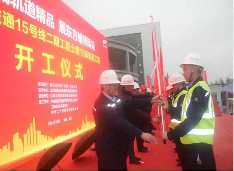 出席儀式的領(lǐng)導(dǎo)共同為軌道工程開工拉桿