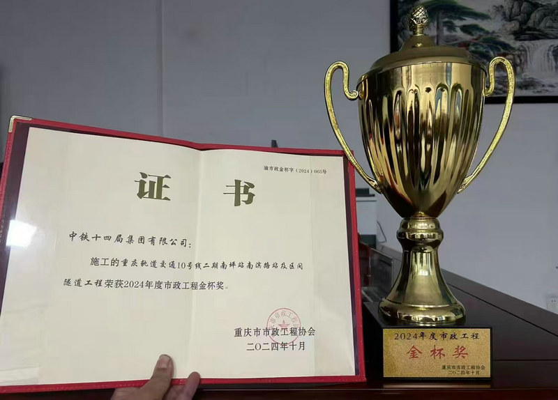 在重慶這座充滿活力與發(fā)展?jié)摿Φ某鞘兄校壍澜煌ňW(wǎng)絡(luò)如動(dòng)脈般穿梭其中,連接著各個(gè)區(qū)域,推動(dòng)著城市的高效運(yùn)轉(zhuǎn)。中鐵十四局集團(tuán)五公司重慶市軌道交通十號(hào)線二期南坪站南濱路站及區(qū)間隧道工程項(xiàng)目經(jīng)理部南坪站南濱路站及區(qū)間隧道工程,作為其中一顆璀璨的明珠,憑借其卓越的建設(shè)成果,榮獲重慶市市政工程協(xié)會(huì)“2024 年度市政工程金杯獎(jiǎng)”,這一榮譽(yù)背后,是無(wú)數(shù)建設(shè)者的智慧與汗水,是技術(shù)創(chuàng)新與質(zhì)量把控的完美結(jié)合。------中鐵十四局集團(tuán)五公司重慶軌道交通 10號(hào)線二期南坪站南濱路站及區(qū)間隧道工程榮獲重慶市市政工程“金杯獎(jiǎng)”