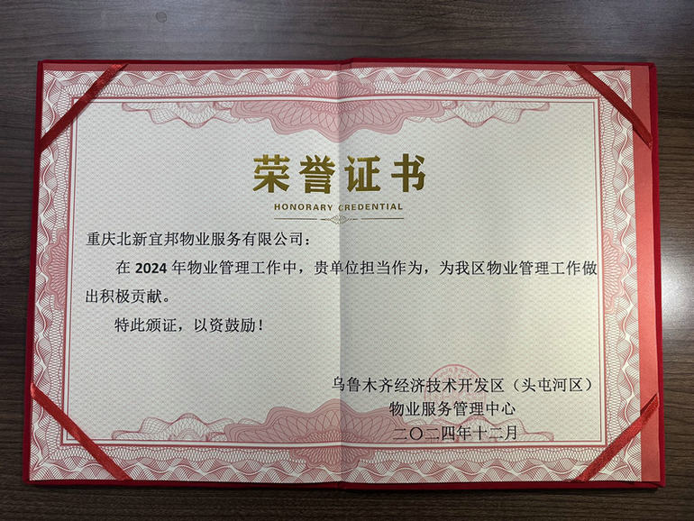 烏魯木齊訊(通訊員 馬小玲)近日,重慶北新宜邦物業(yè)服務(wù)有限公司憑借其卓越的服務(wù)品質(zhì)和專業(yè)的管理水平,在眾多同行中脫穎而出,被烏魯木齊經(jīng)濟(jì)技術(shù)開發(fā)區(qū)(頭屯河區(qū))物業(yè)服務(wù)管理中心授予“擔(dān)當(dāng)作為”先進(jìn)單位榮譽(yù)稱號,這一殊榮是對該宜邦物業(yè)長期以來辛勤付出和杰出貢獻(xiàn)的高度認(rèn)可。