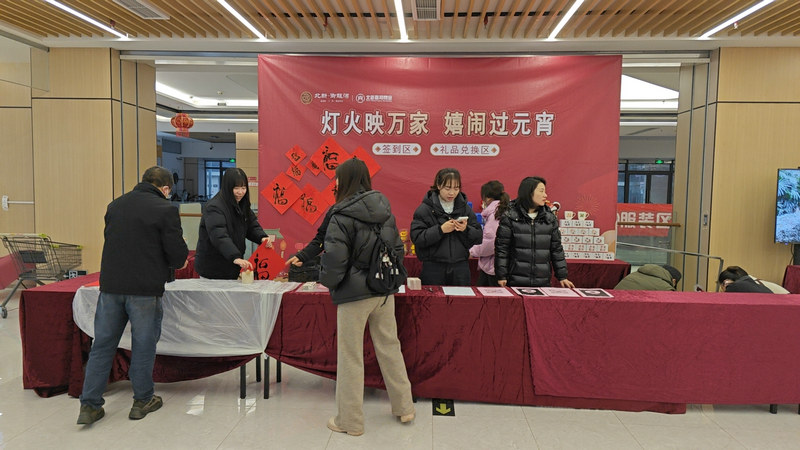 除了湯圓派送,業(yè)主還可憑活動券在現(xiàn)場參與猜燈謎、套圈等游園活動,收集印章兌換精美禮品。