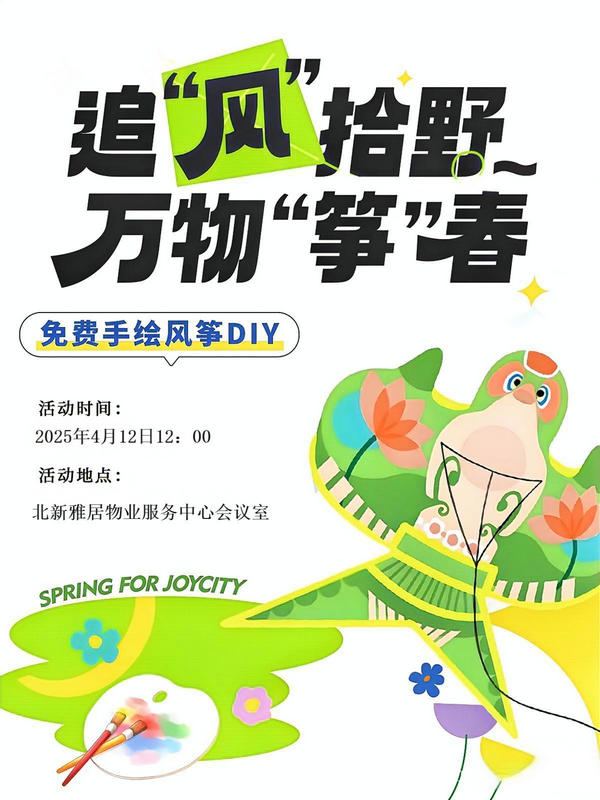 烏魯木齊訊(通訊員 馬小玲)春風(fēng)送暖,紙鳶翻飛。為了豐富業(yè)主們的業(yè)余生活,增進(jìn)鄰里間的情感交流,重慶北新宜邦物業(yè)于2025年4月12日在北新雅居成功舉辦了一場主題為“追‘風(fēng)’拾野,萬物‘箏’春”的免費(fèi)手繪風(fēng)箏DIY活動,吸引了眾多業(yè)主熱情參與。