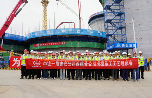 (西安訊)5月14日,中鐵一局建安公司西安建筑分公司在西安農投15萬噸綜合性糧食倉儲基地(藍田)項目順利舉辦滑模施工工藝現場觀摩會。公司相關部門負責人及專家組成員,分公司領導以及項目部負責人、各項目安全、技術管理人員代表共計50人參加活動。