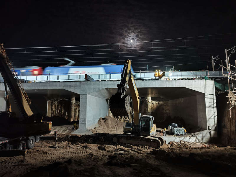 安全防線筑牢,零事故守護鐵路運行。“安全是施工的底線。”項目部與鐵路部門建立聯(lián)動機制,所有施工作業(yè)限定在“天窗期”內(nèi),現(xiàn)場布設(shè)防護網(wǎng)、預(yù)警裝置,專職安全員全程盯控。頂進過程中,針對管線復(fù)雜等突發(fā)情況,提前制定“管線保護預(yù)案”等措施,確保施工與鐵路行車“雙安全”。