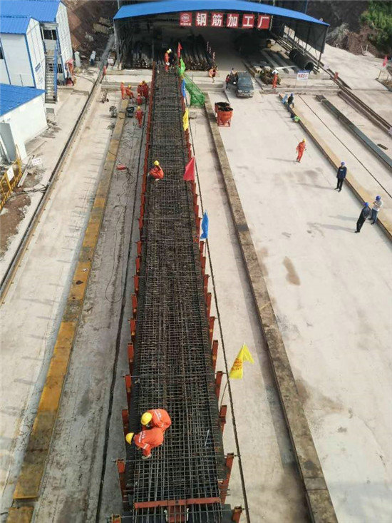 渝黔擴能項目是重慶市“交通三年行動計劃”中的重點項目,工期也由原來的4年縮短到3年,預(yù)計2020年建成通車。為了加快施工進(jìn)度,中鐵二十一局五公司渝黔項目部全體干部職工放棄所有節(jié)假日,采用五加二、白加黑的工作模式,風(fēng)餐露宿、夜以繼日,精心組織、科學(xué)施工快速推動梁場建設(shè),僅僅用了56天時間就完成了制梁場的鋼筋加工區(qū)、材料堆放區(qū)、梁體預(yù)制區(qū)、成品存梁區(qū)及生活區(qū)等全部功能配套設(shè)施,“首梁”比預(yù)定工期提前了13天。