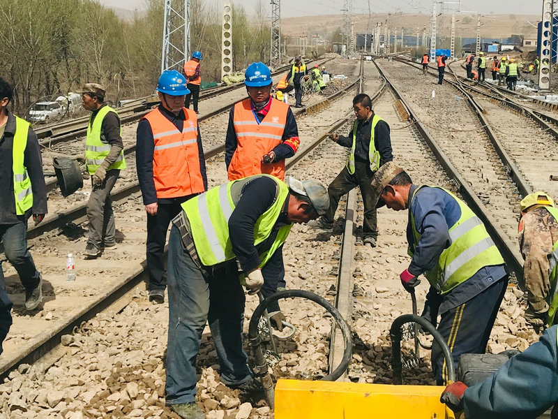 本次封鎖施工是開(kāi)通同煤岢嵐煤炭專用線的重要環(huán)節(jié),也是項(xiàng)目最后一次Ⅲ級(jí)封鎖施工,從4月22日9:00時(shí)給點(diǎn),到12:00時(shí)封鎖結(jié)束,計(jì)180分鐘。主要施工項(xiàng)目為線路整修,小機(jī)搗固。建設(shè)者們?cè)谑┕?zhǔn)備中,仔細(xì)核對(duì)各項(xiàng)技術(shù)參數(shù),業(yè)務(wù)骨干反復(fù)研究技術(shù)方案,統(tǒng)籌部署落實(shí)各項(xiàng)工作,確保各個(gè)施工環(huán)節(jié)的時(shí)點(diǎn)控制責(zé)任到崗、精確到人,確保封鎖期間的人員、設(shè)備安全、和施工任務(wù)的順利達(dá)成。