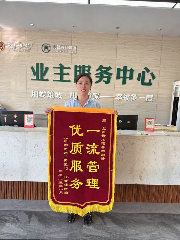 除了照料花草,寵物托管更顯服務(wù)溫度。二街區(qū)42棟一位餐飲業(yè)主避暑期間,家中小貓無(wú)人照料,樓棟管家向靜主動(dòng)承擔(dān)起每日喂食、清理的任務(wù)。業(yè)主返家時(shí),見(jiàn)愛(ài)寵活潑依舊,感動(dòng)不已,2025年8月4日送來(lái)錦旗,用“一流管理,優(yōu)質(zhì)服務(wù)”的稱贊的對(duì)物業(yè)人表示了感謝和認(rèn)可。