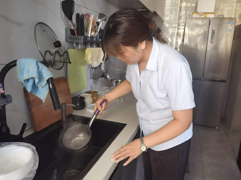 突發(fā)狀況前,她們更是業(yè)主的“及時雨”。此前,一位業(yè)主家中水龍頭突發(fā)漏水,管家接到求助電話后,10分鐘內(nèi)便攜帶扳手、密封圈等工具上門。一邊麻利拆解故障部件、更換零件,一邊安撫業(yè)主情緒;維修結(jié)束后,還順手擦拭臺面水漬,臨走時貼心叮囑“有問題隨時找我”,讓業(yè)主倍感溫暖。