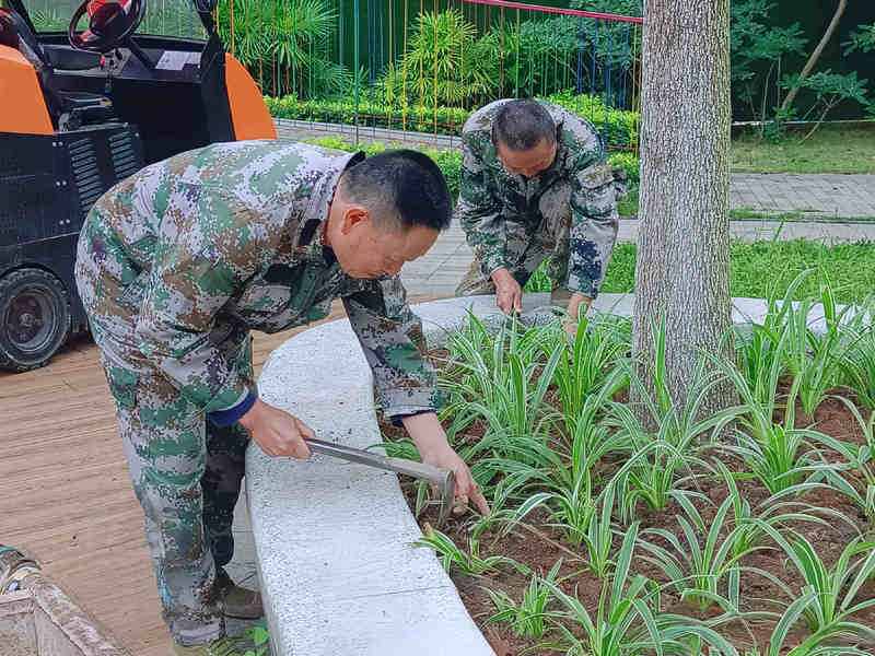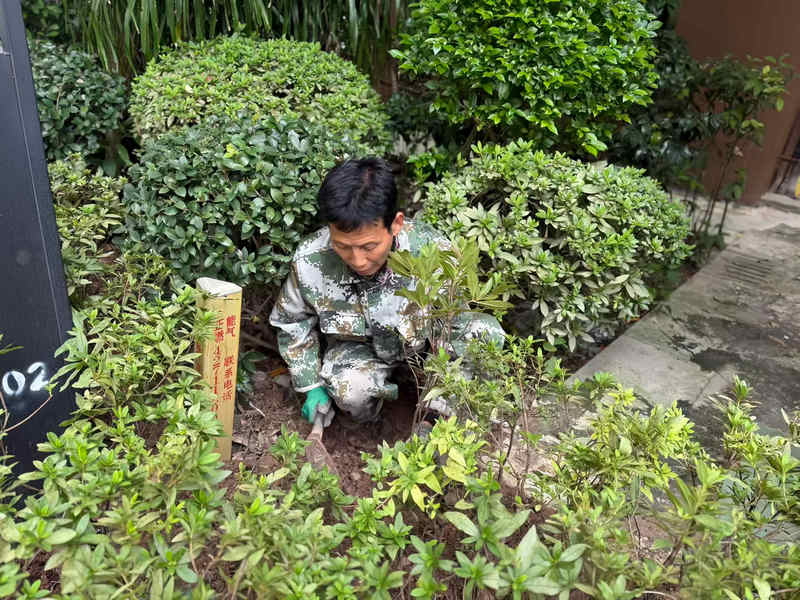 施工中,物業(yè)工作人員以“分區(qū)負責(zé)、專業(yè)協(xié)作”模式高效推進。先行疏松土壤,為植物生長打牢基礎(chǔ),結(jié)合區(qū)域光照、濕度等微環(huán)境規(guī)劃布局,最后嚴格按規(guī)范操作保障成活率并跟進澆水、固定等后續(xù)管理,全過程兼顧生態(tài)平衡與景觀美學(xué),盡顯物業(yè)服務(wù)精細化水平。