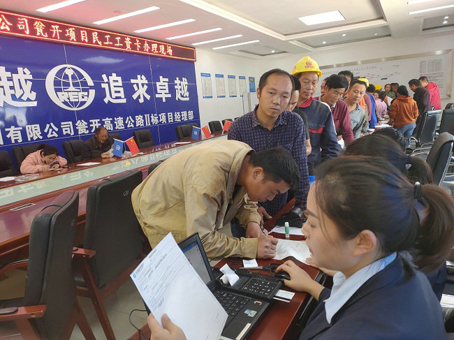 如何做好農(nóng)民工權(quán)益維護(hù)工作,保障農(nóng)民工工資按時(shí)發(fā)放,一直是項(xiàng)目部工會(huì)的“頭等大事”。今年以來(lái),項(xiàng)目部就“實(shí)錘重?fù)?rdquo;,對(duì)凡進(jìn)場(chǎng)施工隊(duì)伍采取簽訂“安保書和工保書”,繳納“安保金” 、“欠薪應(yīng)急”、“專用賬戶”、“一戶一冊(cè)”,與地方行業(yè)主管部門共同監(jiān)管的勞動(dòng)用工動(dòng)態(tài)管理制度,聯(lián)合中國(guó)建設(shè)銀行甕安支行工作人員,設(shè)立“工地銀行”現(xiàn)場(chǎng)為200余名農(nóng)民工辦理”惠福農(nóng) “工資卡,并指導(dǎo)幫助他們激活銀行卡,確保農(nóng)民工工資按時(shí)足額發(fā)放,切實(shí)維護(hù)農(nóng)民工切身利益。