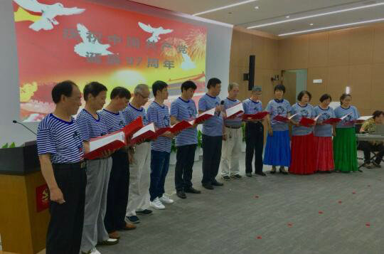 圖四、上海地鐵302標(biāo)項目部員工積極融入到當(dāng)?shù)厣鐓^(qū)慶祝建黨97周年活動中來,詩朗誦《贊歌獻給黨》
