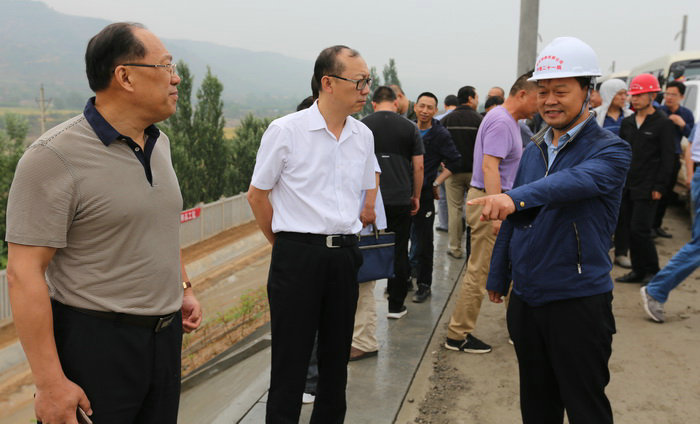馬新民與黃慶華、張驊在路基上愉快交談 上午8時40分,銀西鐵路有限公司副總經(jīng)理馬新民率領(lǐng)工程部、安質(zhì)部、慶陽指揮部、吳忠指揮部、設(shè)計院路基專冊,各標段項目經(jīng)理、總工程師、總監(jiān)、副總監(jiān)等以及其他相關(guān)人員一百多人來到中鐵二十一局YXZQ-5標段,先后實地觀摩由一工區(qū)、三工區(qū)施工的路基電纜槽。