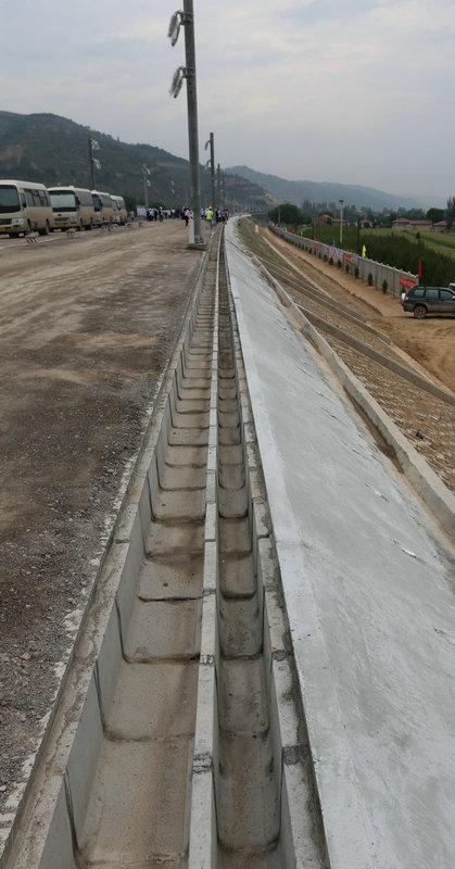 圖為已完工的路基電纜槽 參觀工地后,觀摩團來到中鐵二十一局集團路橋公司銀西高鐵慶城制梁場,在會議室召開“中鐵二十一局集團銀西高鐵YXZQ-5標路基電纜槽施工交流會”。銀西鐵路有限公司副總經(jīng)理馬新民主持會議,并作了講話。按照會議議程,首先觀看了20分鐘一工區(qū)、三工區(qū)電纜槽安裝施工視頻,再由中鐵二十一局銀西項目部向與會人員匯報電纜槽施工工藝。