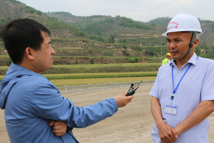 圖為慶陽電視臺記者采訪一工區(qū)總工梁建強