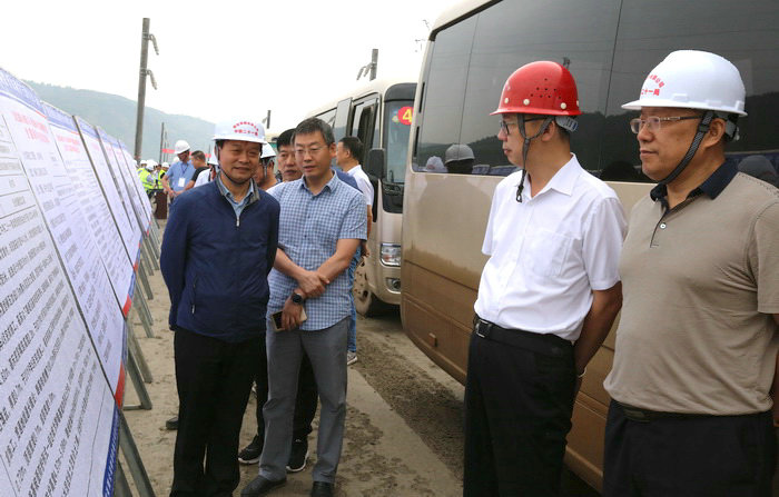 圖為馬新民、黃慶華、張驊與監(jiān)理在一起