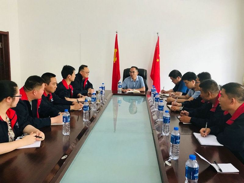 在項目部會議室,鄭先明一行和項目干部職工進行工作座談,聽取了項目黨建工作、建家建線、企業(yè)文化落地、財務(wù)管理等方面的匯報。