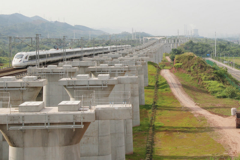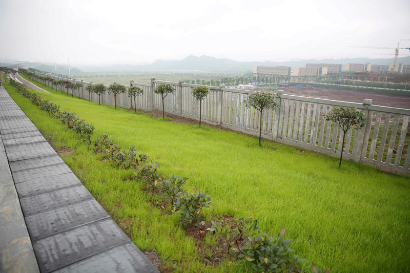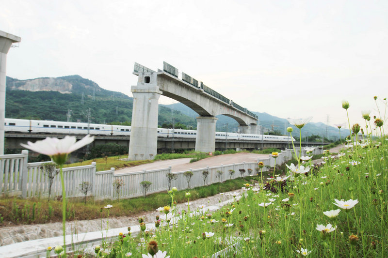 站在建成的重慶鐵路樞紐珞璜南右線特大橋相對應的左線路基上,放眼望去,滿眼綠色,標準化的路基護坡及排水系統(tǒng),紅花檵木、紅葉石楠、金魚草等多種花草、綠色植被與周邊自然環(huán)境融為一體,展現出一副生態(tài)美的壯麗畫卷。轉體合攏后的右線特大橋下,每隔幾分鐘就有一列高鐵列車風馳電掣穿行而過。為將鐵路建設對生態(tài)環(huán)境的影響降到最低限度,對路基邊坡和橋梁區(qū)域綠化進行專項設計施做;表土集中堆放,采用綠網覆蓋;棄碴場遵循先擋后棄原則,及時復耕綠化;路基開挖一級、防護一級、同步綠化,臨近橋梁墩柱邊坡,先做安全防護,并及時種草植綠,做到黃土不漏天。