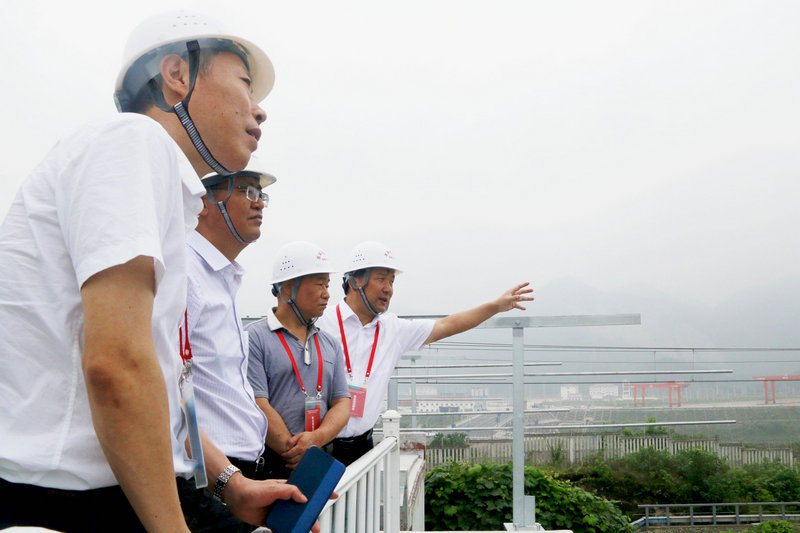 參與調研的領導在珞璜南特大橋查看并聽取匯報