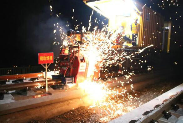漢十高鐵使用的無砟軌道,每根軌道長500米,鋪在枕木上后,兩段接頭之間肯定會有細微的縫隙,這時需要焊接。中鐵十一局集團采用了國內(nèi)最先進的移動閃光焊技術,讓兩節(jié)鋼軌消除最后的縫隙,完全“融合”在一起變成一根鋼軌。