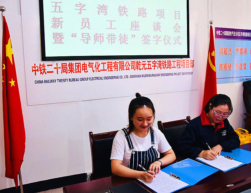 本站府谷訊(記者張明 通訊員涂朝靜 李金翼)為加強對新員工技術(shù)和技能的培養(yǎng),有效促進新員工技能提升和崗位成才。7月30日,中鐵二十局集團電氣化公司乾元五字灣鐵路項目舉行了2019年新入職員工座談會暨“導(dǎo)師帶徒”協(xié)議簽字儀式。